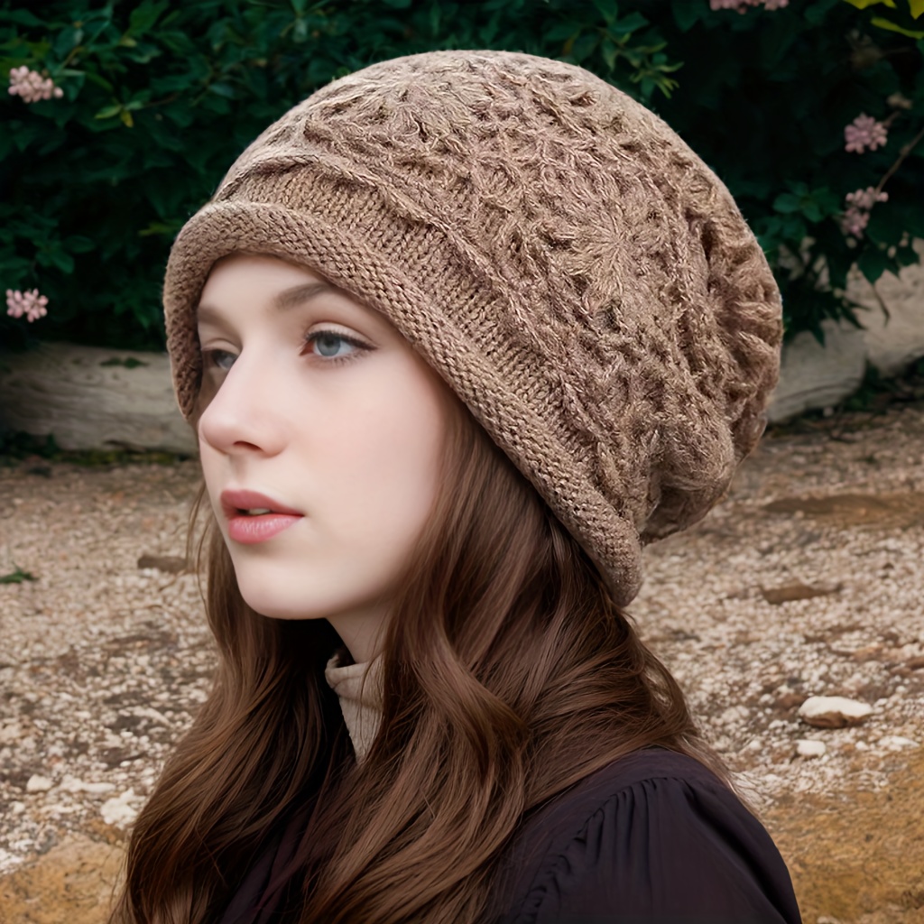 TEMU 여성용 2024 신상 비니 모자 - 수제 크로셰 스택 가능 겨울 캡, 부드럽고 탄력 있는 따뜻한 착용감, 추수감사절 & 캐주얼 아웃핏용, 포근한 패션 액세서리, 질감 디자인, 고품질 공예, 쇼퍼스
