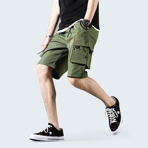 마이이푸-GJ 남성 지퍼 솔리드 컬러 멀티 포켓 반바지 캐주얼 캠핑 아웃도어 핏 릴렉스 전술 카고