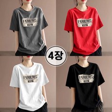 1+1+1+1 여성 빅사이즈 레터링 캐주얼 빈티지 프린트 티셔츠 편안한 유니크 라운드넥 반팔티 여름 데일리룩 ~100kg까지 4종세트 44-99