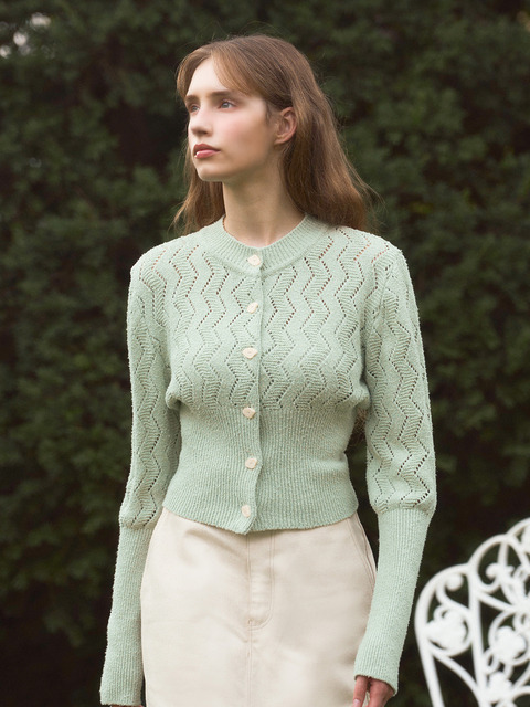 [에브모우] 다이아몬드 아워글래스 가디건_파스텔 민트 그린아이보리