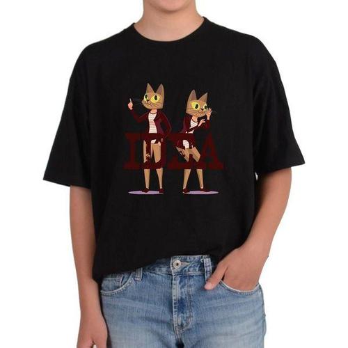[에이치플러스몰]반팔라운드 IDEA 고양이 얼굴 영리함 순발력 아이디어 전사이즈