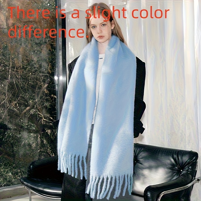 TEMU 1개 여성용 우아한 플러시 겨울 스카프 숄 - 부드러운 블루/핑크/화이트 프린지 트림, 두껍고 따뜻한 방풍 랩, 다용도/핑크/화이트 태슬 - 내구성 있는 럭셔리 페이스 스카프 & 칼라 액세서리 (크리스마스 선물로 이상적)
