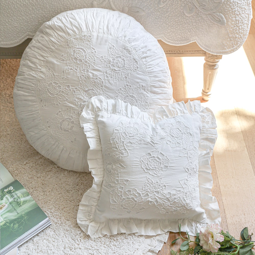 꼬끄시그루 자수 사각쿠션 마스크 2종 예쁜 화이트 미니 원형쿠션커버 (솜 미포함)
