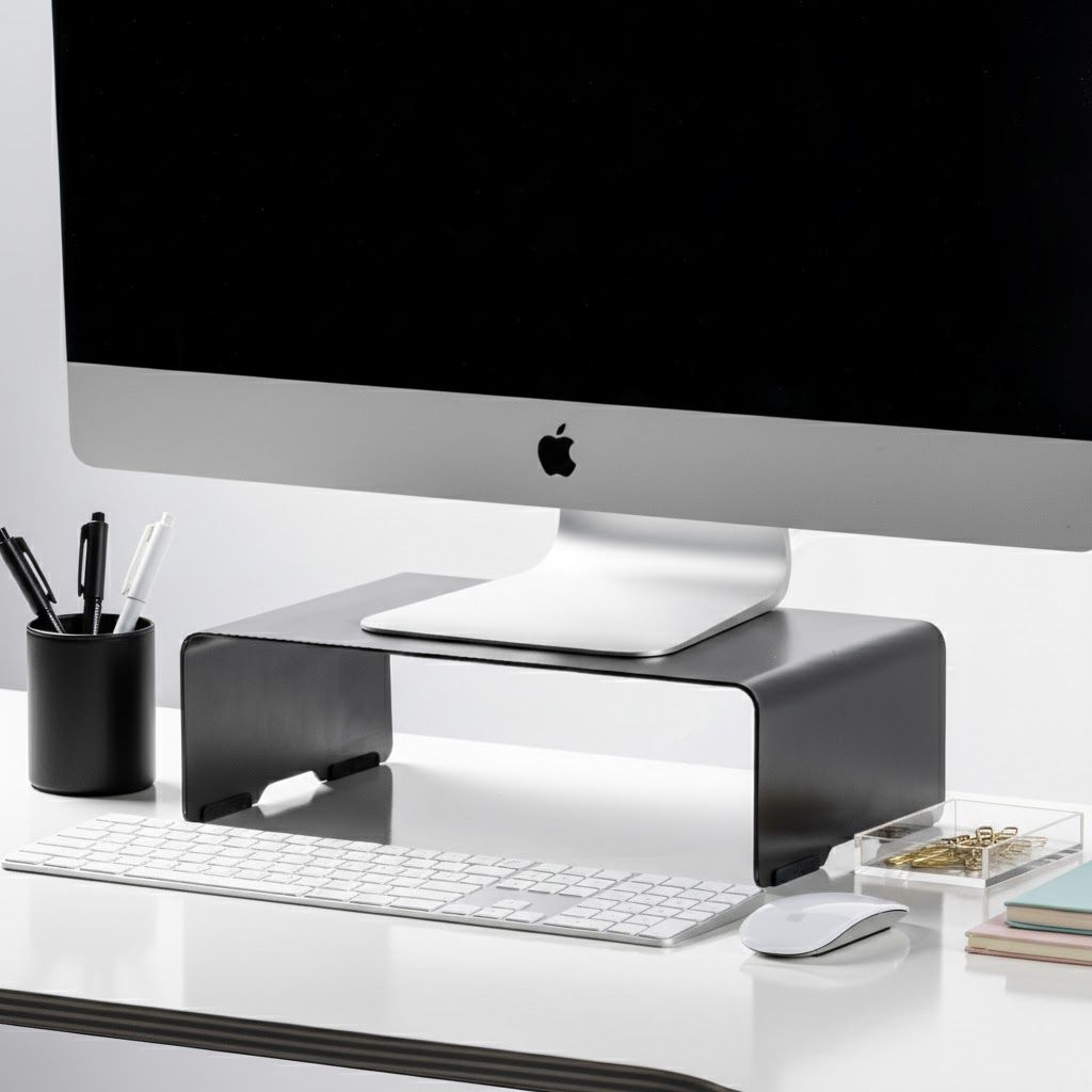 Twelve South Curve 라이저 모니터 스탠드 | iMac 및 디스플레이용 보관 선반이 있는 인체 공학적 데스크탑