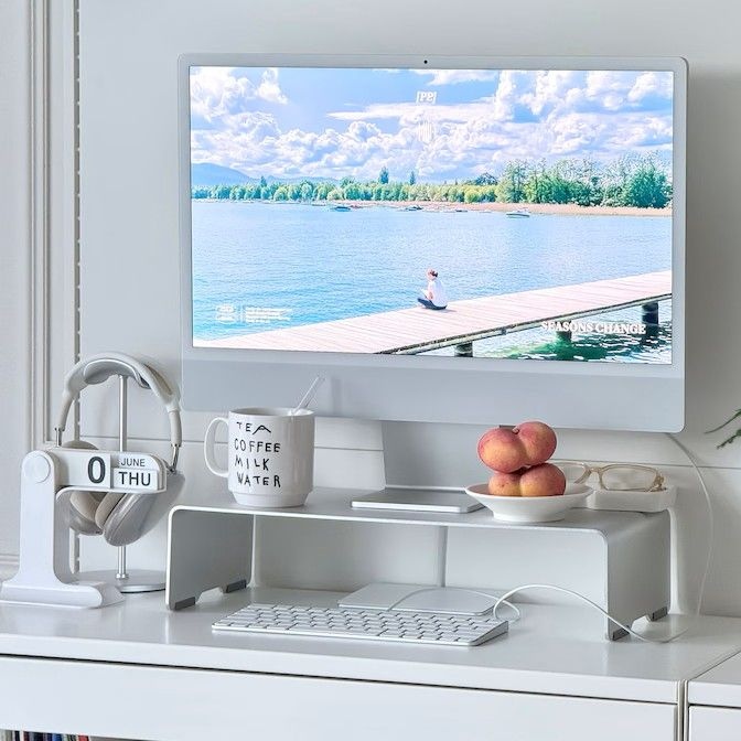 아크릴 모니터 받침대 아이맥 컴퓨터 거치대 투명 클리어 스탠드 선반