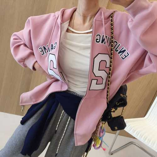 아이미마인 / 투투 레터링 자수 패치 오버핏 후드집업 (5color)