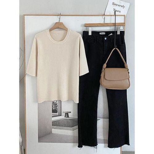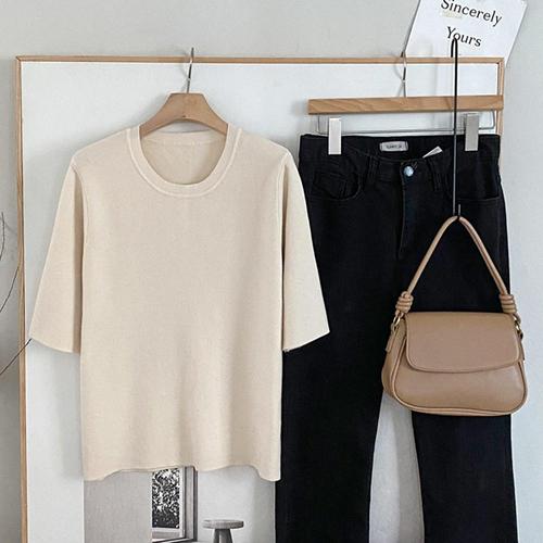[샵앤]여성 라운드 심플 무지 기본 반팔 니트티 DGB-WKN-4728-아이보리