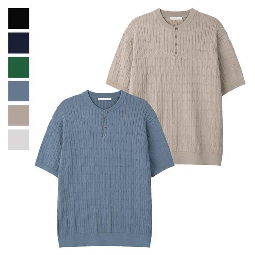 남자 여름 케이블 헨리넥 반팔 니트티 SG-KNH-Q002-아이보리