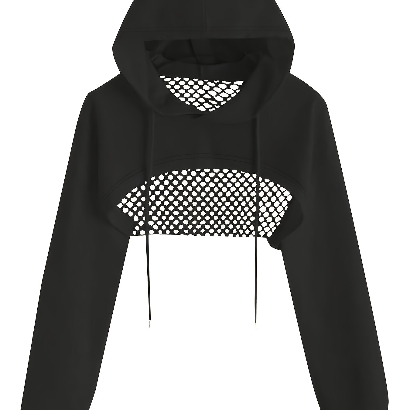 TEMU 여성용 메쉬 후드 스웨트셔츠, 솔리드 컬러 베이직 스타일, 아메리칸 스위트 & 스파이시 패션 탑, 봄 여름 가을 2025 신상, 솔트 스타일 스트리트웨어 스포티 캐주얼 자켓