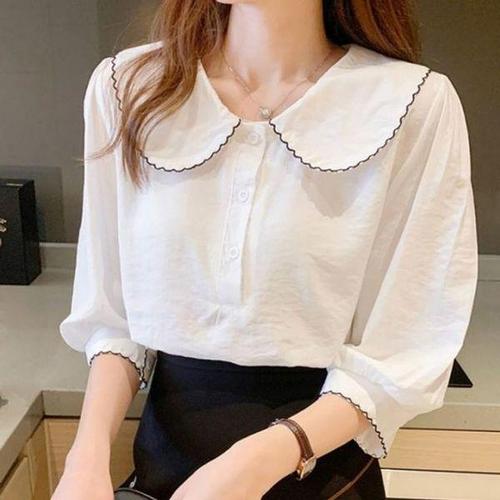 [셀럽하우스]핀턱카라 AUUF6271 아이스원단 블라우스 여성 여름 오피스 셔츠