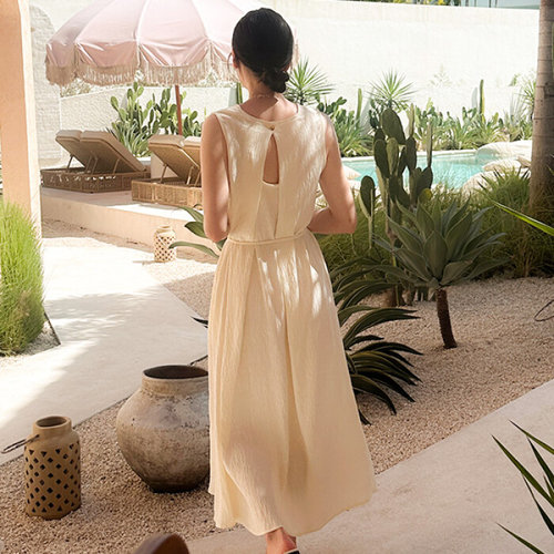 [에이치플러스몰]아이스소재 클래식 냉주름나시원피스