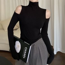 아이엠몽 여성 어깨 트임 포인트 초커 니트 티셔츠