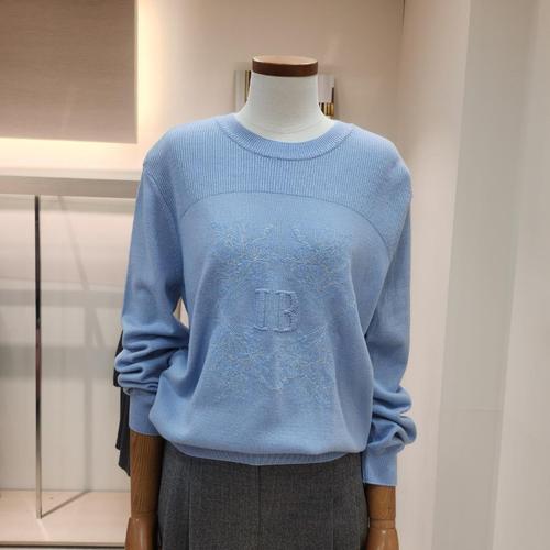 [아이잗바바]울 블렌드 라운드 엠보 자수 니트 (BS2B1PO231/스카이블루)
