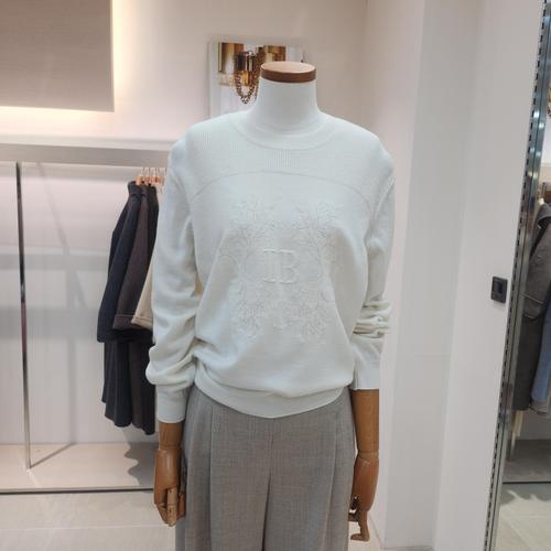[아이잗바바]울 블렌드 라운드 엠보 자수 니트 ( BS2B1PO231/아이보리)