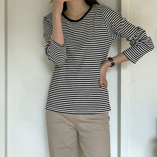 아이우먼 톡톡줄지스판배색티 NEK862M302 빅사이즈