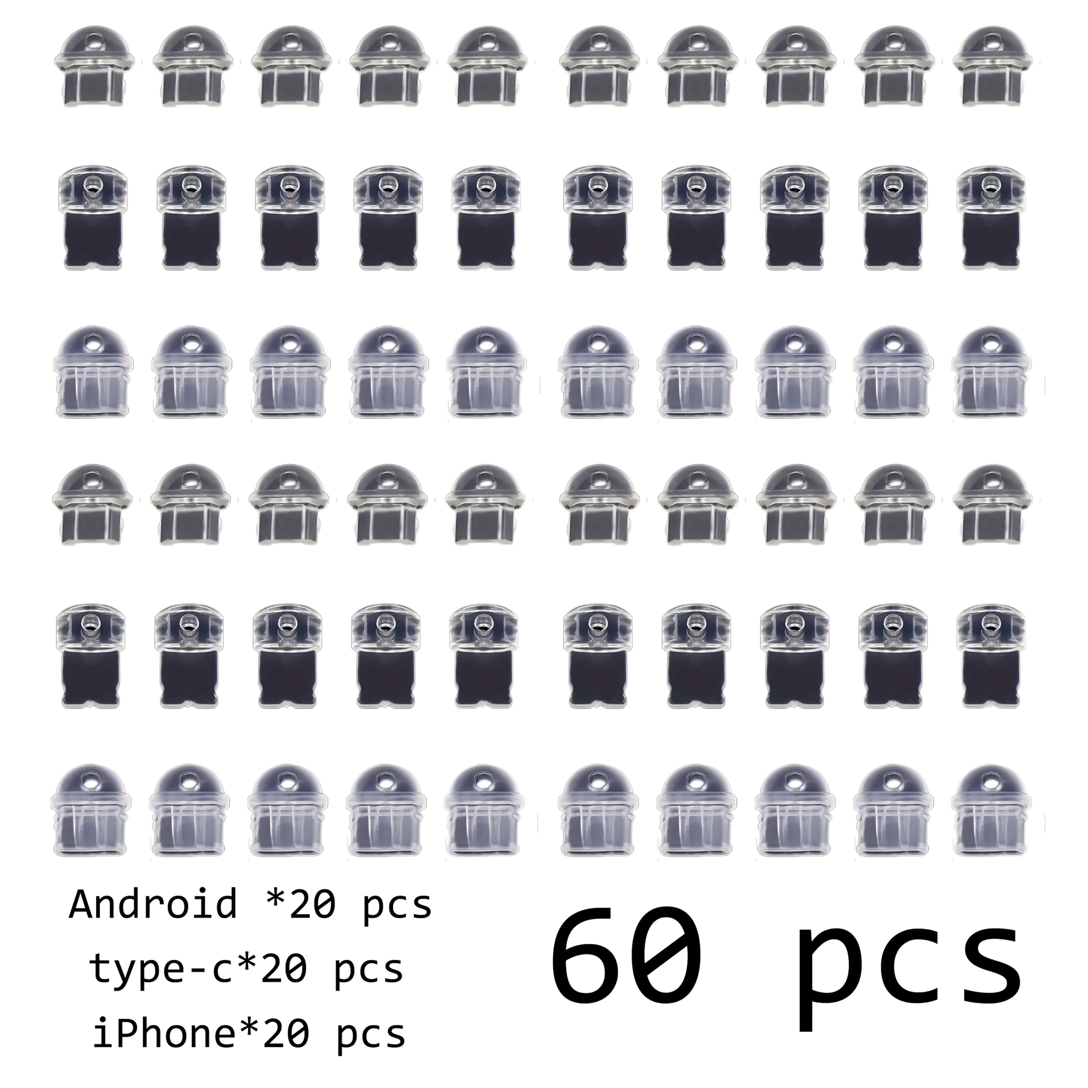 TEMU 60개 투명 먼지 플러그 모바일 폰 및 컴퓨터용, Type-C와 호환, for Iphone 및 Android 충전 포트용. DIY 펜던트 장식에 구멍이 있는 트렌디한 제품, 사무실, 학교 및 가정용 소형 선물에 적합.