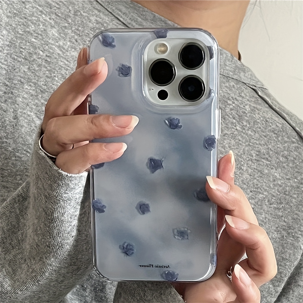 TEMU 사랑스러운 광택 폰 케이스, 보라색 장미 꽃 디자인, 아이폰 모델 11부터 16 프로 맥스 및 플러스까지 적합, 미적 선물로 완벽한, 보라색 꽃이 있는 에폭시 폰 케이스, 미적 폰 케이스, 꽃무늬 아이폰 케이스, 여성용 보라색 폰 케이스, 휴대용 커버, 케이스