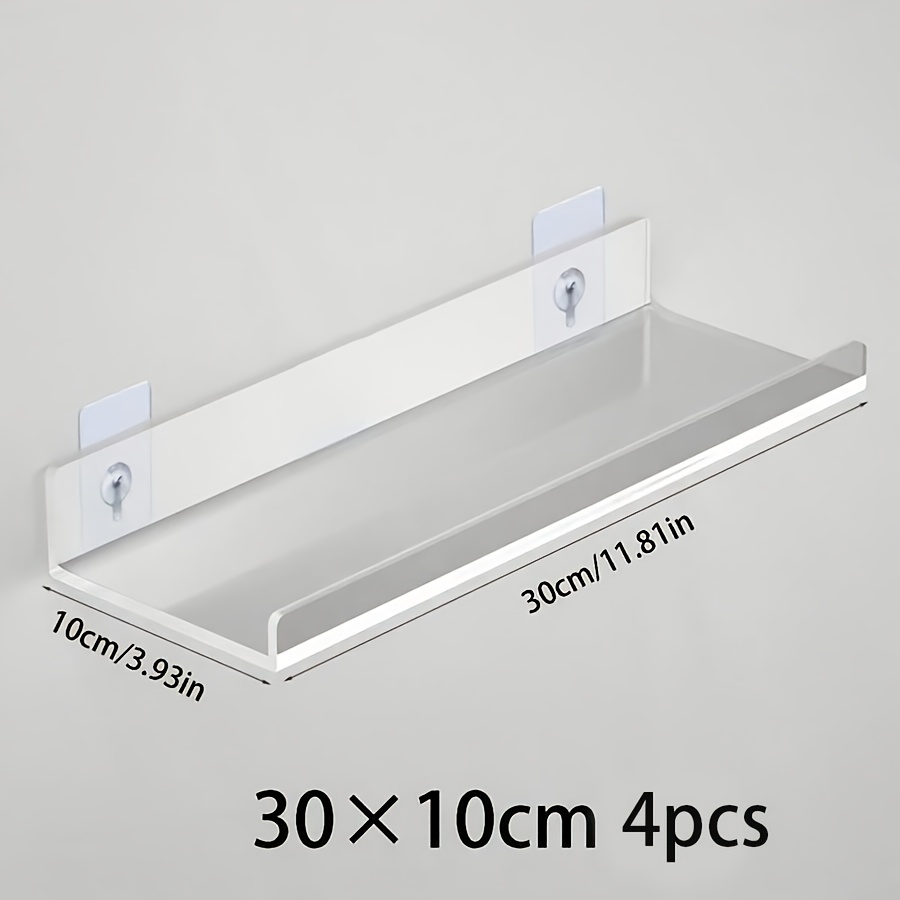 TEMU 드릴 필요 없는 접착식 벽걸이 모던 & 아크릴 플로팅 선반, 거울 간격 디자인 - 공간 절약형 욕실 수납 선반, 샤워, 욕조, 세면대 정리용 레이어드 캐비닛 분리대 - 간편 조립, 다목적 플로팅 선반