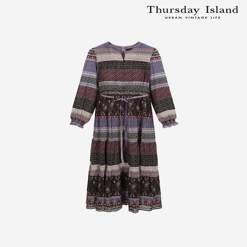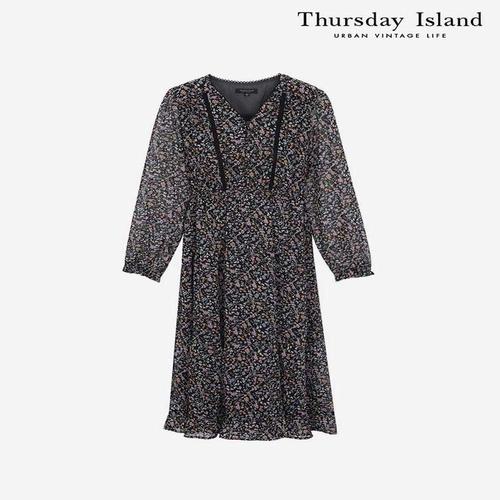 [써스데이아일랜드][Thursday Island] 프린트 러플 플레어 원피스(T242MOP148W)
