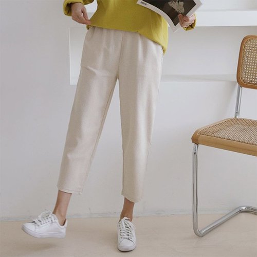 9부 코튼린넨 배기바지 여름 여성 고무줄 밴딩 면바지