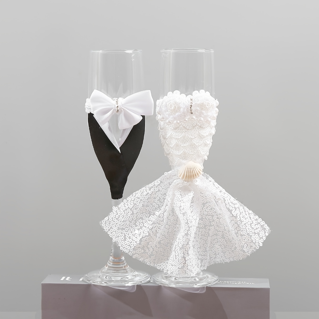 TEMU 신랑 신부를 위한 두 개의 결혼식 샴페인 잔, 약혼 및 결혼식을 위한 드레스와 웨딩 장식용, 크리스마스에 적합한 홈 , 추수감사절에 완벽