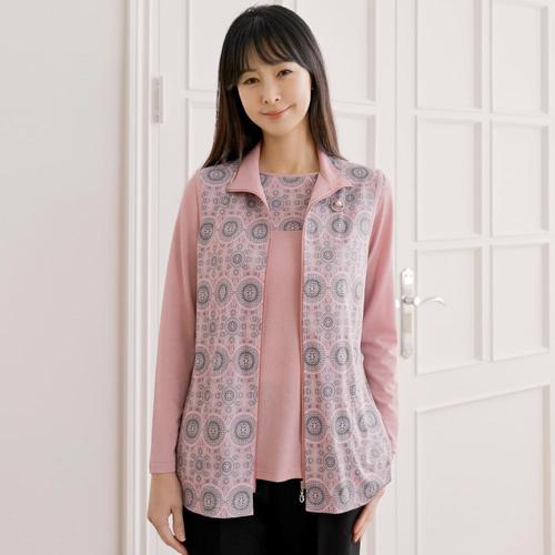 [드리다]엄마옷 드리다 패턴 나염 빅사이즈 조끼 티셔츠 셋트 앙상블 마담옷 할머니옷 아줌마옷 선물