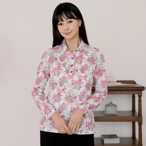 [드리다]드리다 여성 봄 플라워 패턴 빅사이즈 카라 티셔츠 엄마옷 마담 중년여성 아줌마옷 선물