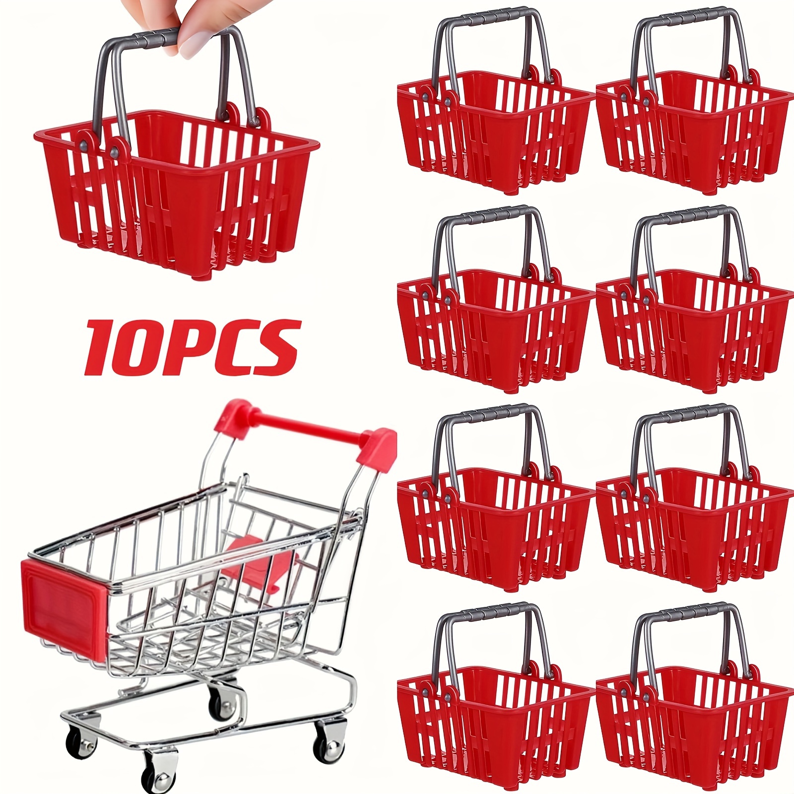 TEMU 10개 미니어처 금속 쇼핑 카트, 바구니 포함, 빨간 슈퍼마켓 트롤리 세트, 창가 디자인, 열린 커버, 사진 프롭, 사무실, 가정, 주방 장식, 생일, 크리스마스, 추수 감사절 선물에 이상적, 바구니, 바구니 및 가정 조직용품