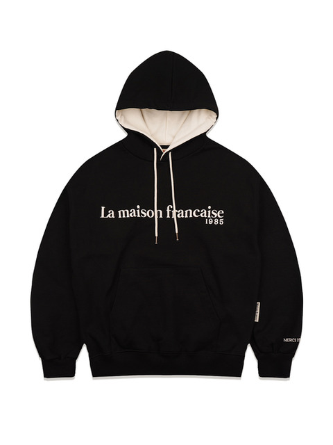 [패블러스아카이브] [기모선택]오버핏 후드 배색 엠보자수 후드 블랙(FCF3TS645M)