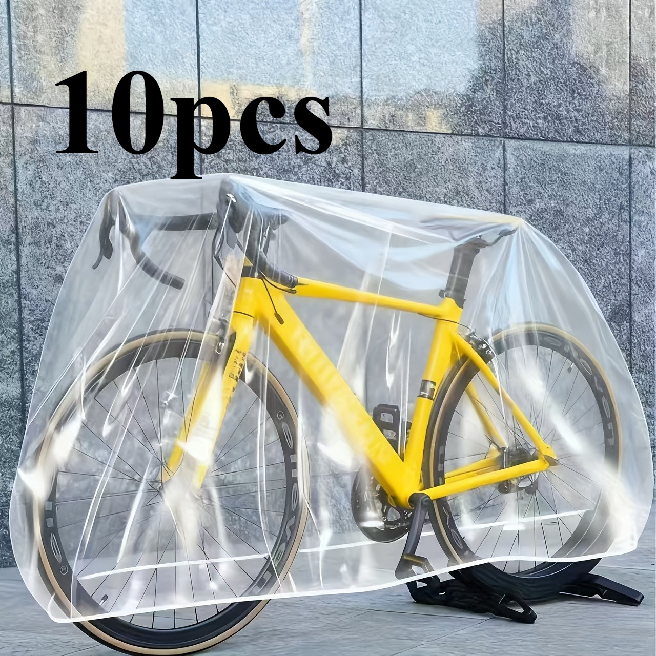 TEMU 투명 PVC 방수 커버 10개, 내구성 있는 자전거 커버, 간편한 설치, 야외 보관용, 로드/트레이닝 자전거 및 오토바이에 적합 (가정/캠핑용)