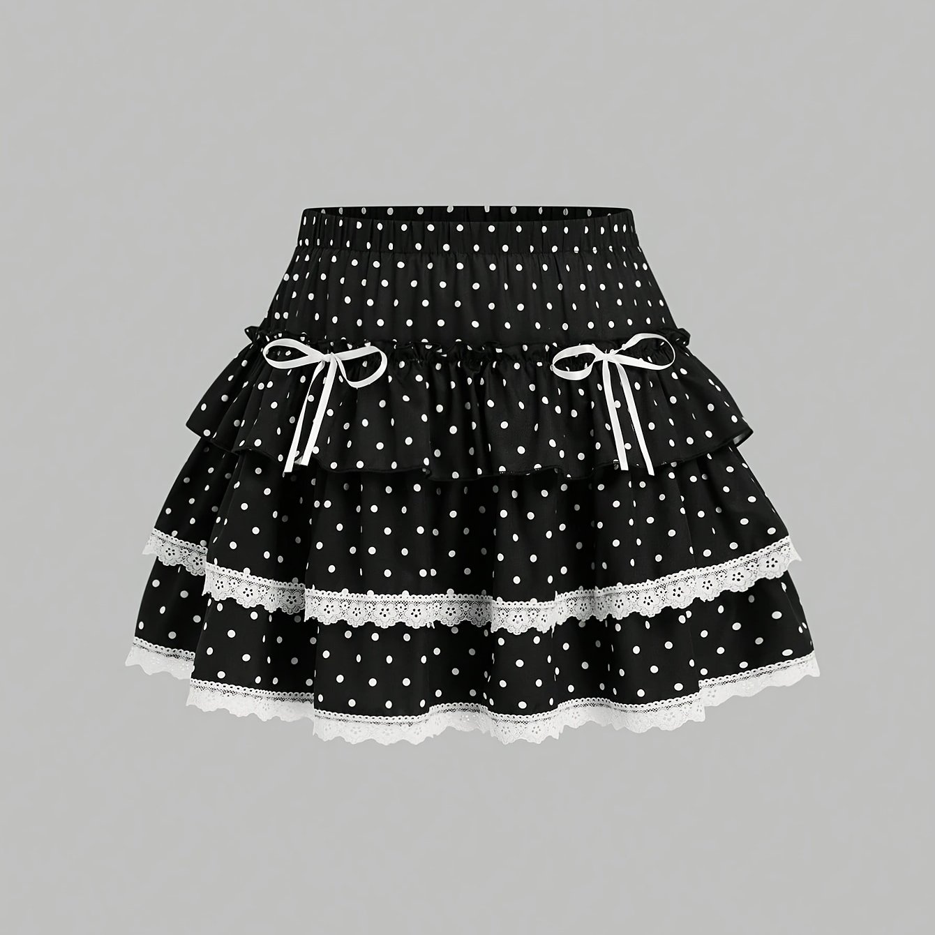 TEMU 새로운 스타일의 스위트 - 스타일 프레쉬 데일리 물방울 무늬 리본 케이크 숏 스커트. 데이트, 티 파티, 친구들과 주말 외출, 사진 촬영, 봄의 공원 산책에 완벽합니다. 레이스 트림과 귀여운 리본 장식이 특징입니다.