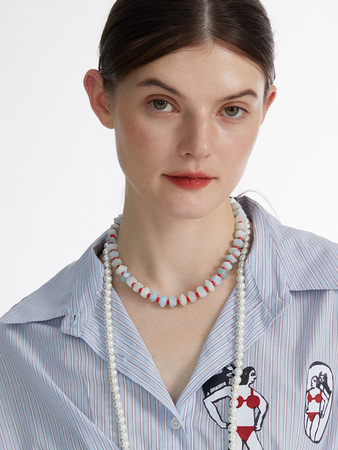 [블루케이] 엔틱러프 아쿠아마린 원석목걸이240708-03