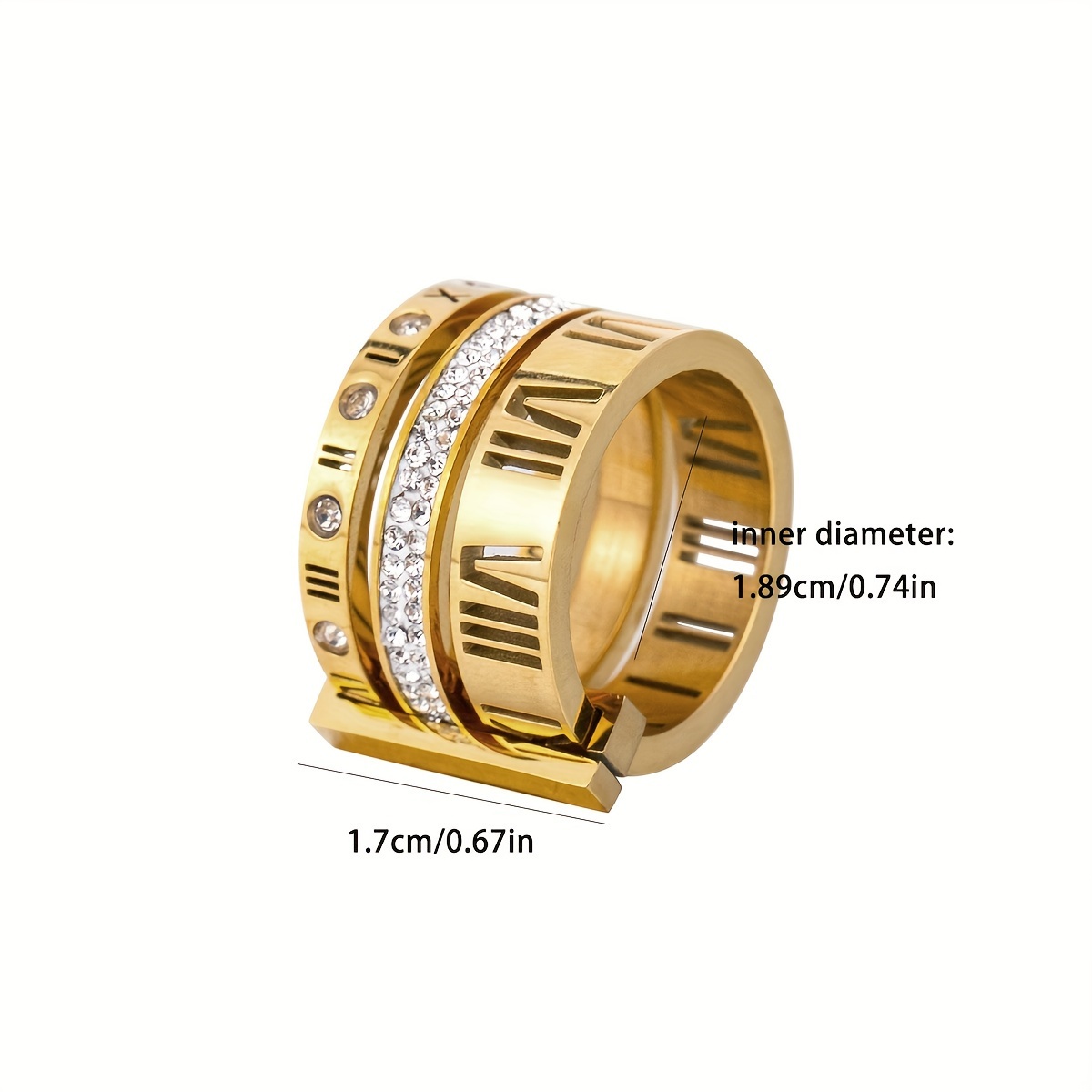 TEMU 스타일리시 빈티지 개성 304 스테인리스 스틸 컬러 믹스 트리플 링 로마 숫자 남성 파티 액세서리