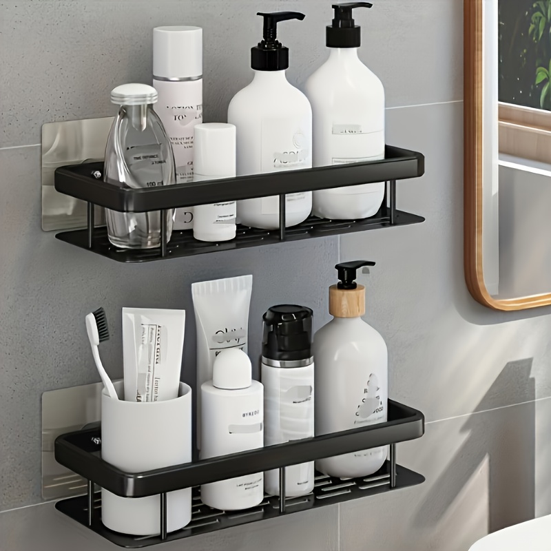 TEMU 1개 블랙 벽걸이형 수납 선반, 고하중 후크 2개 포함 - 고하중 플라스틱, 무타공 접착식/볼트 설치, 공간 절약형 욕실 및 주방 정리대, 샤워 선반 시스템, 세면도구, 화장품, 필수품용 다층 선반, 샤워 캐디