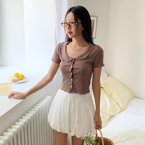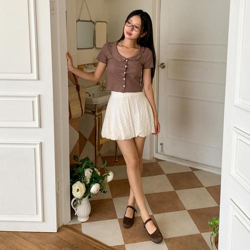 [옷자락] 여성 사랑스러운 꽃 자수 안감 벌룬핏 미니 스커트