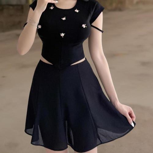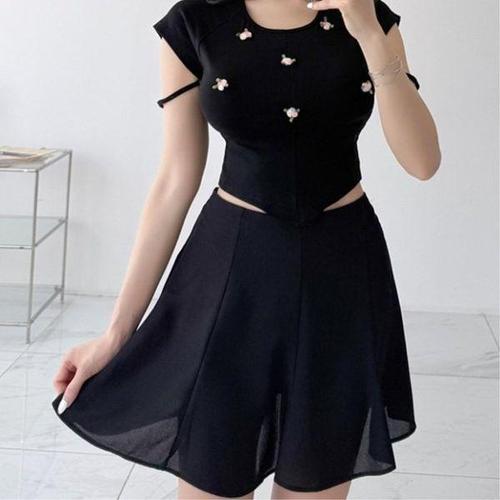 [옷자락]여성 사랑스러운 꽃 자수 안감 벌룬핏 미니 스커트