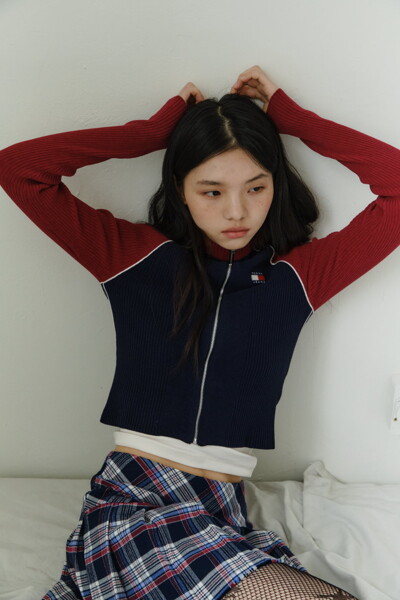 컬러 블록 집업 가디건