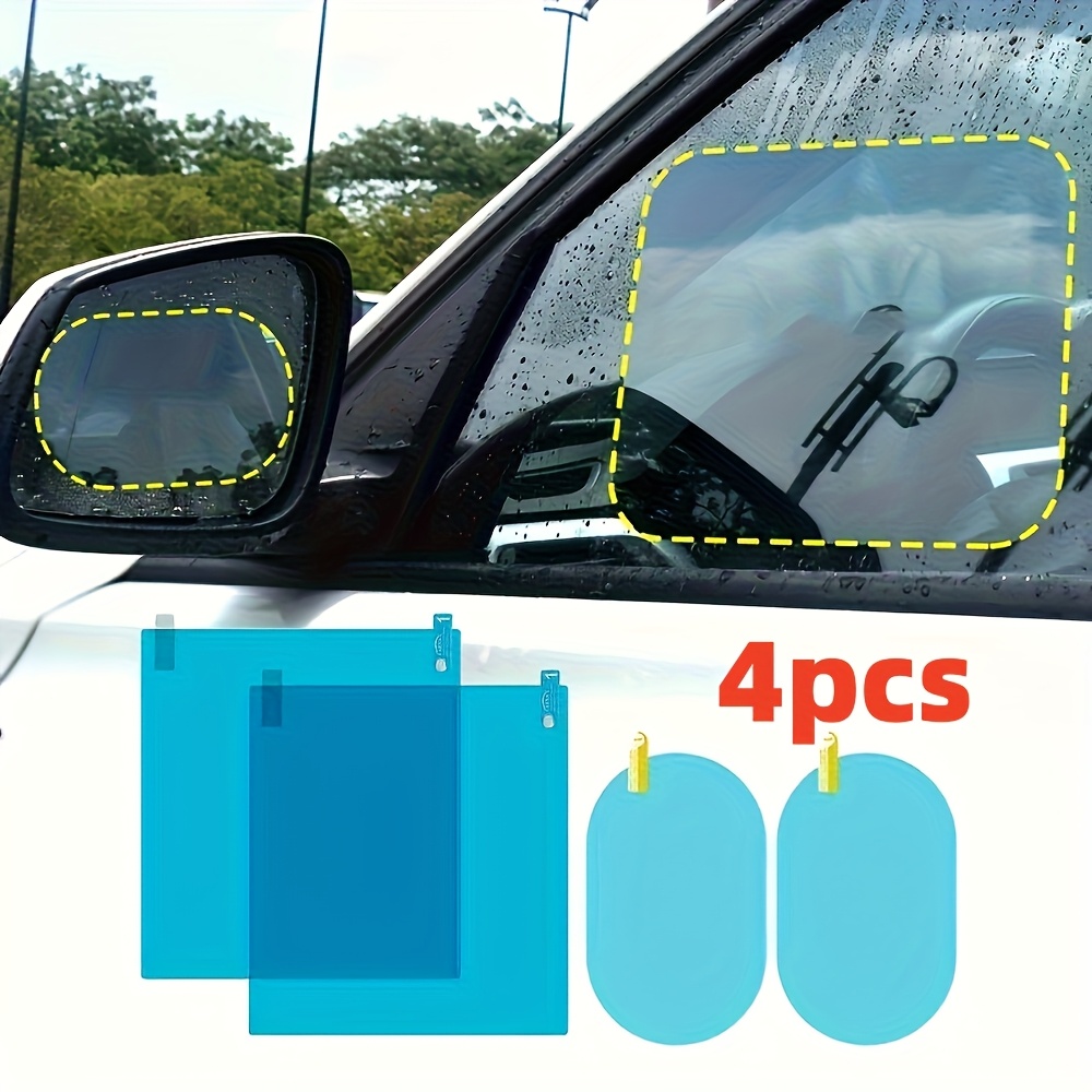 TEMU 4개 세트 자동차 후방 거울 보호 커버 - 방수, 방진 PET 필름, 모든 차량에 적합, 쉬운 설치, 눈과 먼지로부터 차량 안전 개선, 차량용 액세서리, 내구성 있는 투명 커버