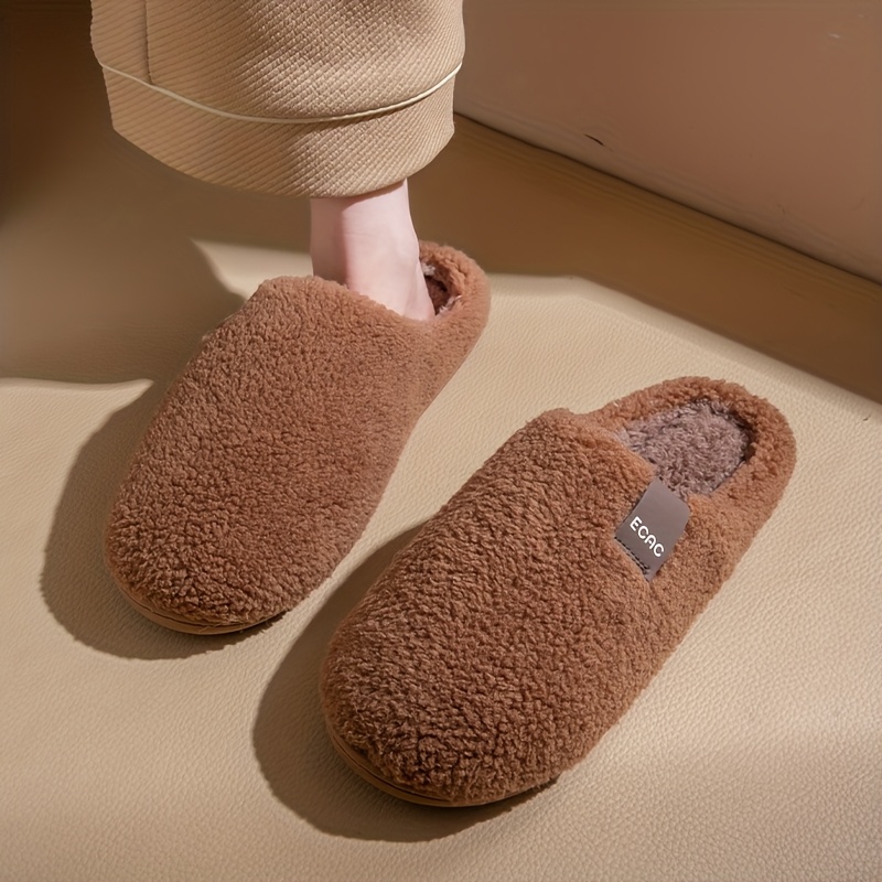 TEMU 남녀공용 심플한 새로운 스타일 안감 포함 두꺼운 플러시 보온 슬리퍼, 가을 겨울용 평평하고 조용한 슬리퍼, 커플용