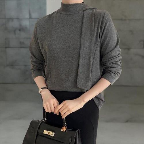 [옷자락]여자 앙고라 롱타이 목폴라 절개 긴팔 출근룩 블라우스