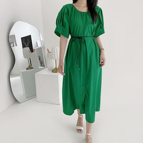 [신상오픈런]|CMO4034|지델루 볼륨 앞트임 긴원피스 주름디테일 숏슬리브 여성스러운 여성_18171125_597559