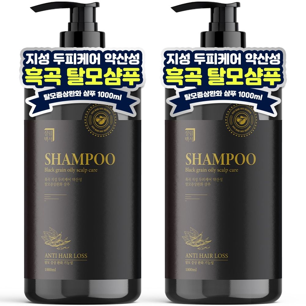 1+1 흑곡 지성 탈모증상완화 대용량 샴푸 1000ml 약산성 두피 검정콩 멘톨 탈모샴푸