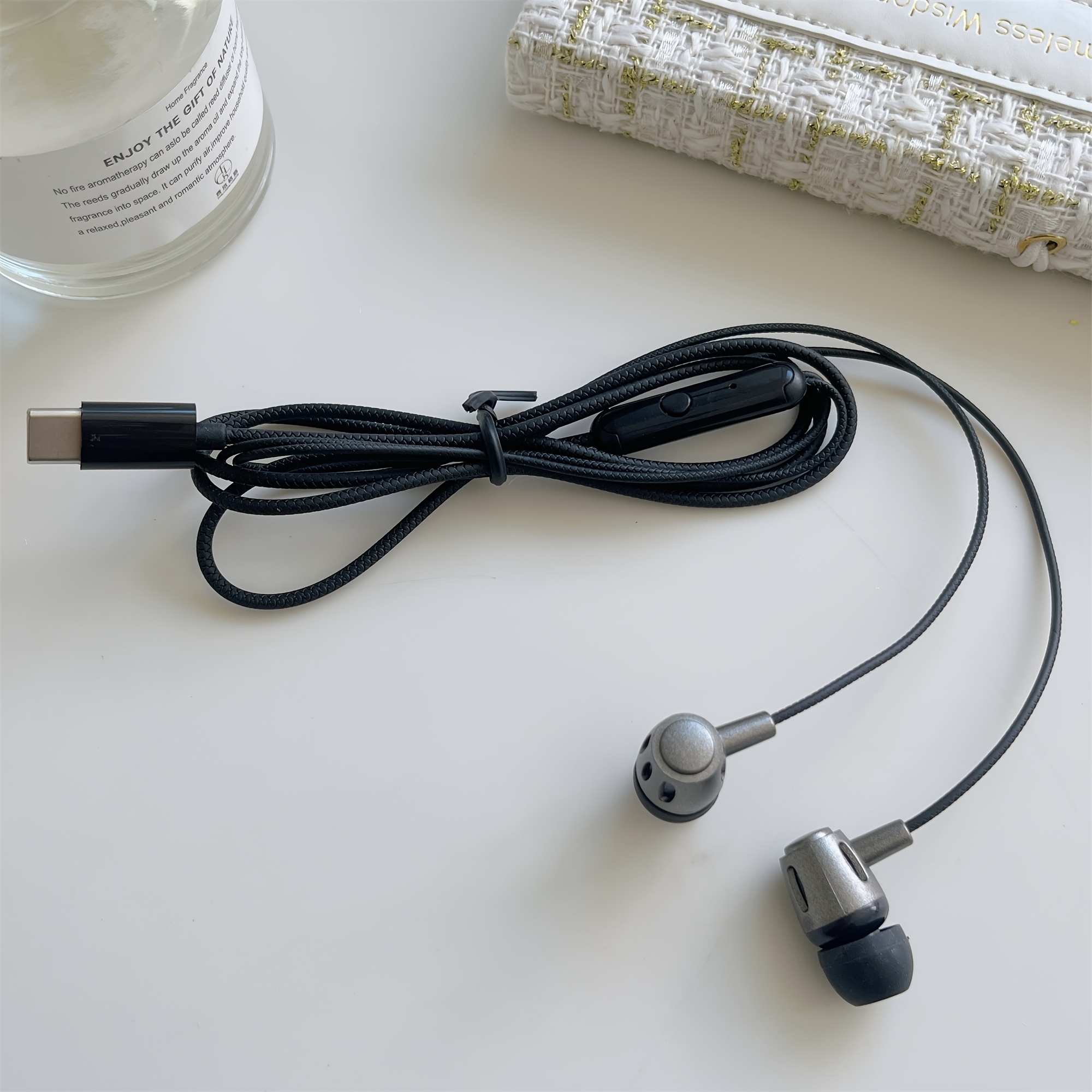 TEMU 마이크가 장착된 이어버드 헤드폰, TYPE-C 유선 세미-인이어, 라운드 케이블 고화질 통화 모바일 헤드셋, 음악 헤드셋, 학생용 헤드셋, Apple iPhone, , Oppo, Vivo, Xiaomi, Honor, Huawei, Motorola, OnePlus 및 기타 휴대폰, MP3/MP4/아이팟/컴퓨터 및 기타 TYPE-C 장치와 호환 가능