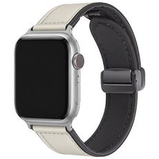 애플워치 호환 브레이드 마그네틱 버클 스트랩38/40/41/42mm 49/46/45/44/42mm 11 10 9 8 7 6 5 4 3 2 se2/3 ultra2/3, 가죽디버클실리콘20mm, 오프화이트
