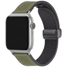애플워치 호환 브레이드 마그네틱 버클 스트랩38/40/41/42mm 49/46/45/44/42mm 11 10 9 8 7 6 5 4 3 2 se2/3 ultra2/3, 가죽디버클실리콘20mm, 크레이지호스아미그린