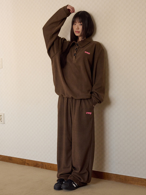 [엠블러] [패키지 세트] 엠블러 남여공용 Love, cozy 자수 풀오버 와이드 팬츠 셋업 AMM1326 AP906-브라운