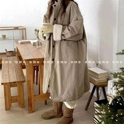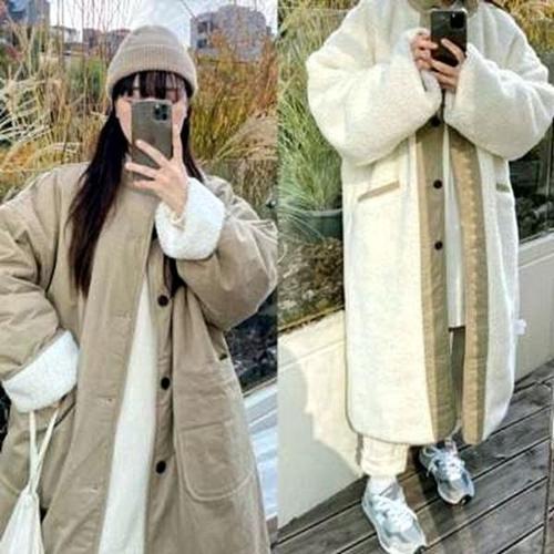 AOKADA 여성 겨울 오버핏 퍼 카라 야상 롱패딩 점퍼 털안감 트렌치 코트 아우터