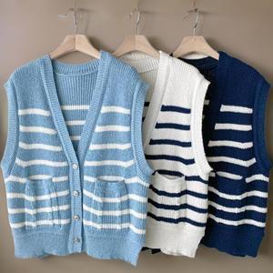 |CDJ6260|라운드넥 아방 블루종 여성 오픈 집업조끼 봄야상