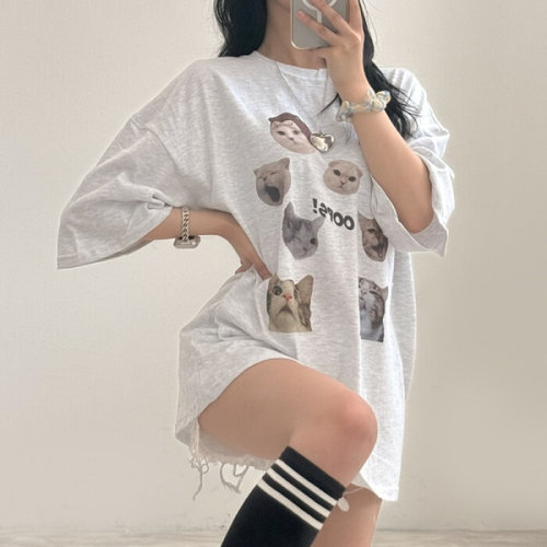 고양이 티셔츠 반팔티 야옹이 냥이 커플티 특이한 반팔 귀여운 오버핏