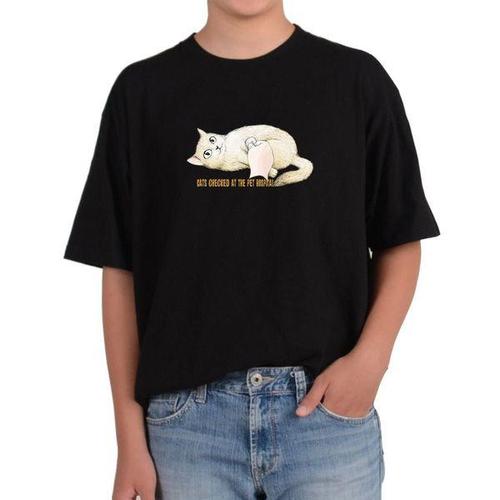 [에이치플러스몰]오버핏반팔티 야옹이 진찰 동물병원 그림 모든사이즈